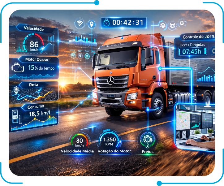 Tenha domínio total sobre veículos, rotas e condutores com dados centralizados e acesso remoto. Sua operação fica segura, rastreável e transparente