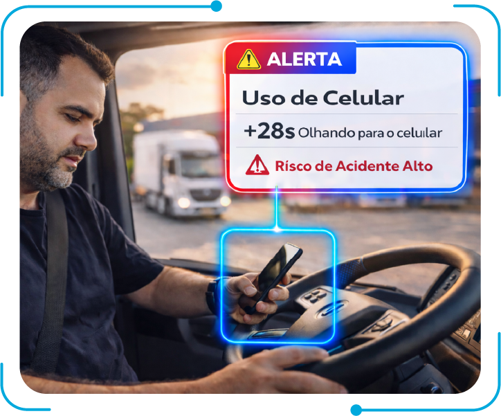 Reduza acidentes e falhas com tecnologia embarcada. Câmeras, sensores e alertas ajudam a identificar comportamentos de risco antes que virem prejuízo