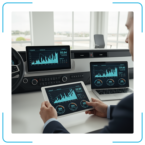 A integração com Power BI permite que você visualize os indicadores mais relevantes da sua frota em tempo real. Crie dashboards personalizados, monitore desempenho e tome decisões com base em dados confiáveis.